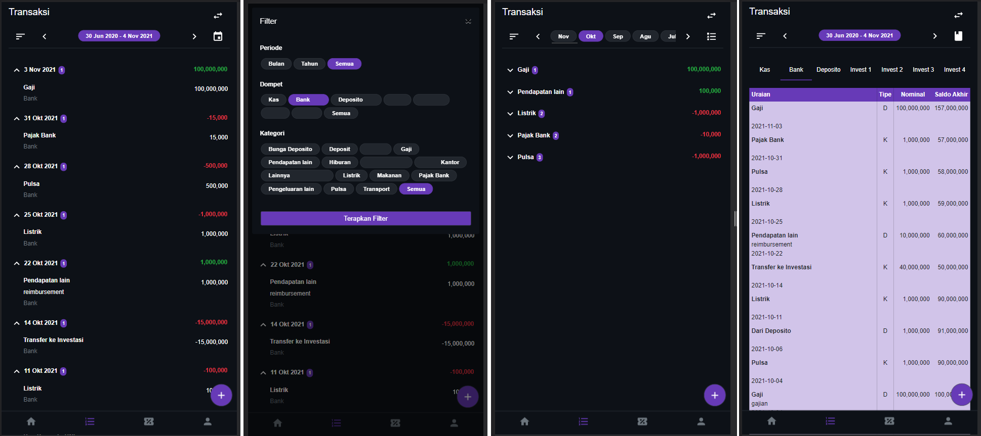 Sejak awal dibuat, aplikasi keuangan saya atur supaya mudah dilihat pada device mobile (Mobile First), karena saya akan sering membukanya di perangkat mobile.